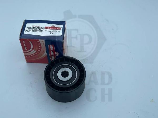 این قطعه روی پایه آلومینیومی بسته میشه و در کنار هرزگرد بالا و تسمهسفتکن قرار میگیره تا تسمه روی پولیها (دینام، کمپرسور کولر، میللنگ و پمپ هیدرولیک) درست حرکت کنه.